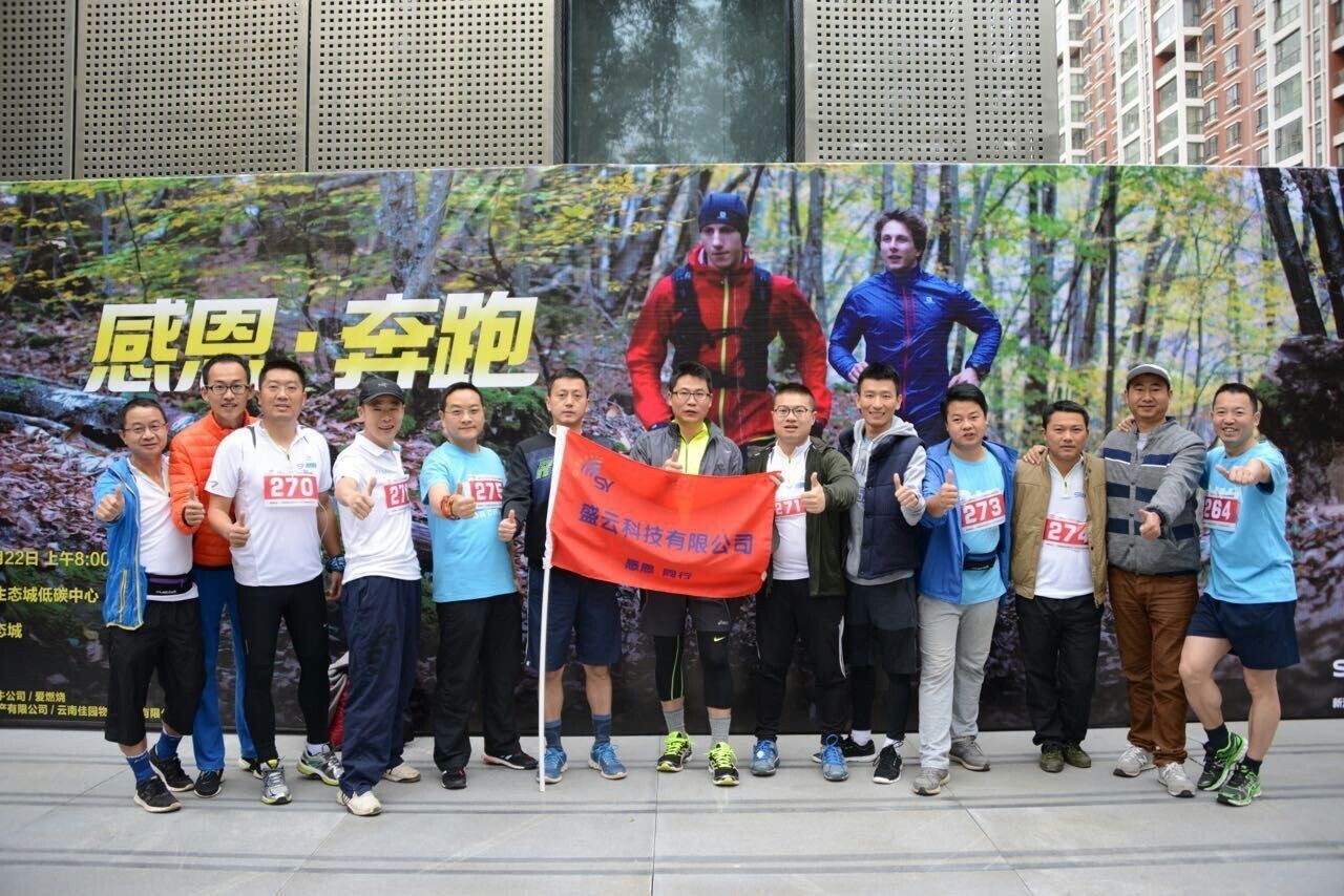 盛云科技有限公司庆典活动一就是参加由世博低碳中心举办的“感恩,奔跑”半程马拉松赛,盛云人都非常踊跃的报名参加了这个活动,在活动现场,参赛选手做好了充足的准备,我们的拉拉队也不示弱,给每一个参加奔跑的盛云人加油!鼓劲!让他们在赛场上不缺水,不缺食,更不缺的是坚定跑完全程的信念,在激烈的赛事中盛云人跑完了全程,成绩不重要,重要的是坚持的可贵,他们都是好样的,跑完下来还没来的及休息,高总就带领着我们全体盛云人“捡垃圾”,把这次“低碳环保,感恩奔跑”的主题发挥到了极致,更增加了我们的信心,加油吧!我相信盛云明天会更好!